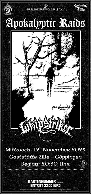 Betreff: APOKALYPTIC RAIDS + WHIPSTRIKER 12. November 2025 Göppingen Kartenbestellung