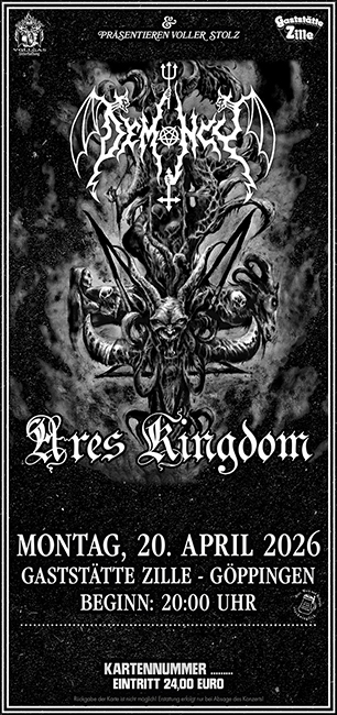 Betreff: DEMONCY + ARES KINGDOM 20. April 2026 Göppingen Kartenbestellung